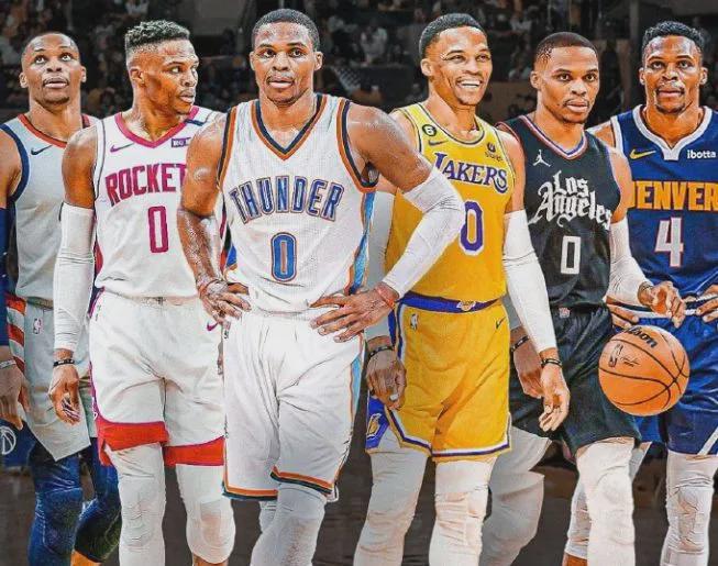 迄今为止17年的球员生涯,威少总共辗转6队,分别是雷霆、火箭、奇才、湖人、快船和掘金。